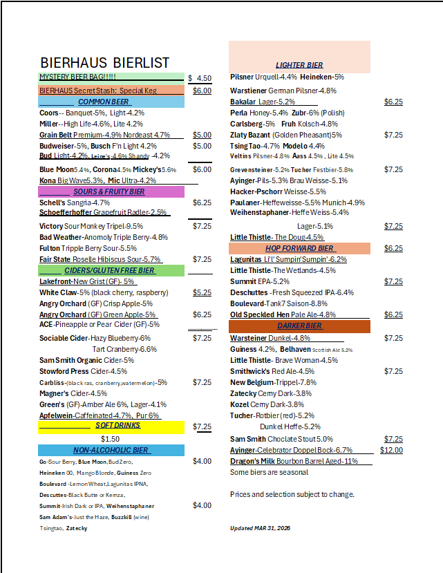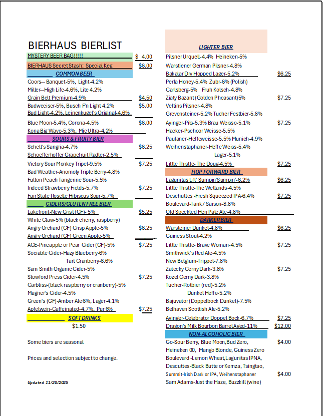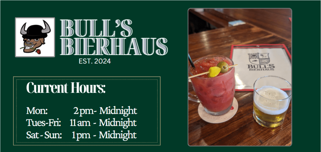 Randy “Bull” Kabes, a seasoned professional in the bar and food service industry, has launched “Bull’s Bierhaus,” a cozy, “old European” inspired establishment that harkens back to classic basement bars. With over thirty years of experience, Bull’s jovial nature and genuine kindness infuse the Bierhaus with a warm, welcoming atmosphere, making it a beloved spot for great drinks and camaraderie.